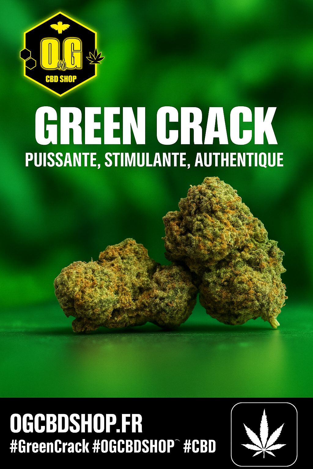 🧾 La Green Crack est une fleur légendaire, à la fois tropicale et énergisante. Son odeur d’ananas et d’agrumes explose dès l’ouverture du sachet. C’est la fleur des esprits dynamiques et des amateurs d’arômes fruités.